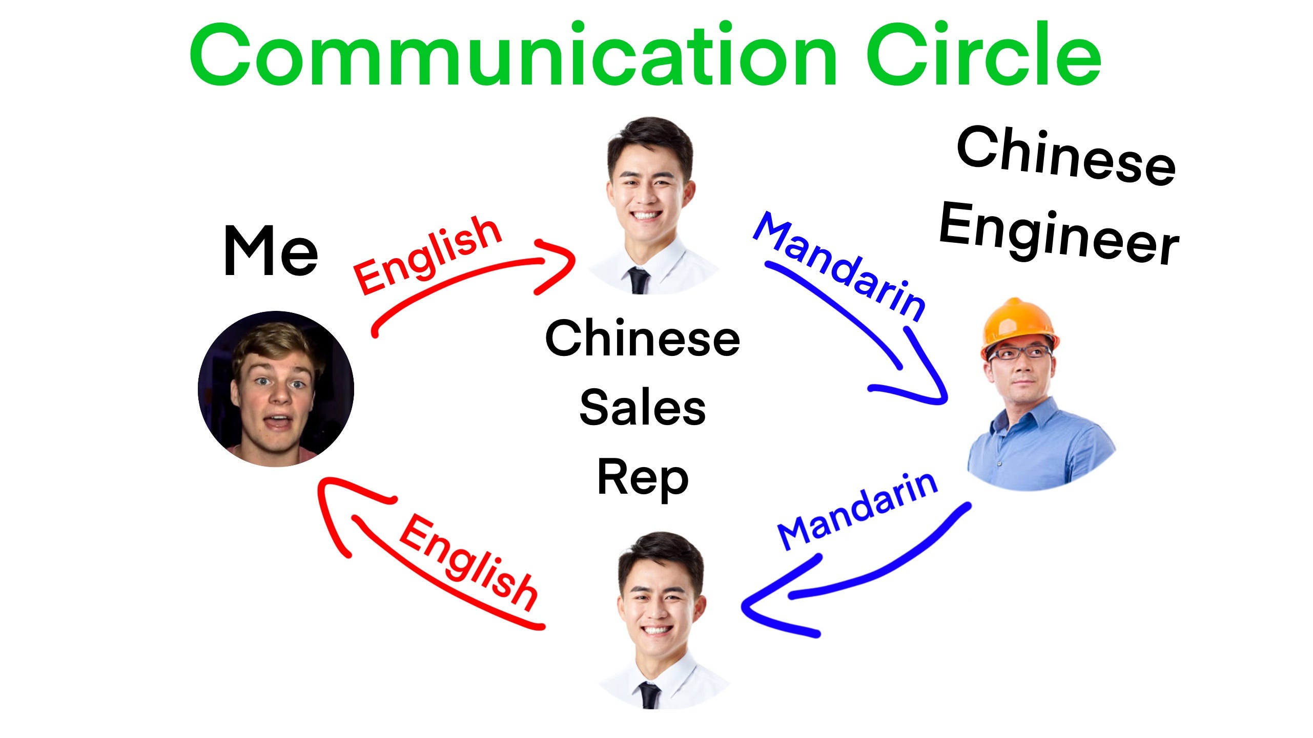 Language isn't the sole obstacle when interacting with my Chinese Sales Rep. Another significant barrier is the element of time. With a twelve-hour time difference between New York City, USA and Shanghai, China, coordinating communication becomes an added challenge.